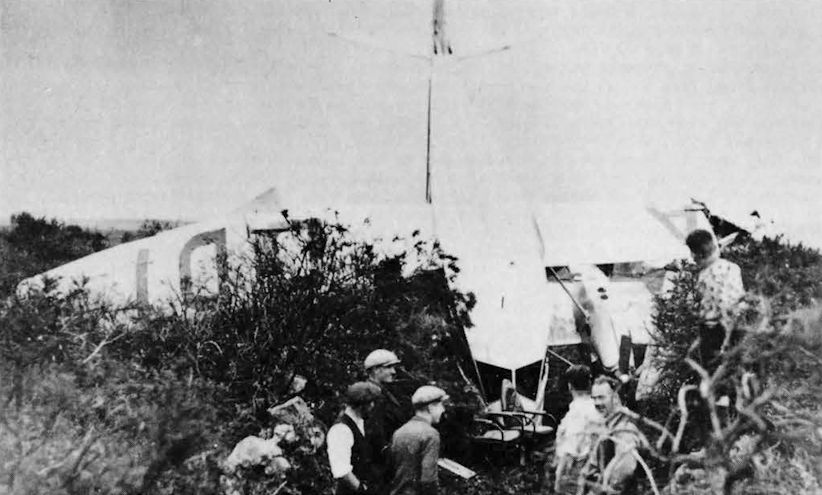 Регистрационный номер: G-ACJM [3] The end of the trail, G-ACJM at Hamble on August 12, 1934, after its crash landing. It never flew again.