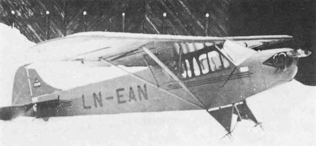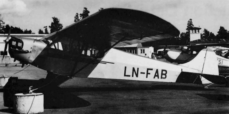 Регистрационный номер: LN-EAN [2] Opening day, June 1, 1939; as well as the various airliners on show, three privately-owned aircraft were on hand to celebrate the airport’s inauguration. They were Taylor J-2 Cub LN-EAN (the tail of which is visible here), Taylorcraft A LN-FAG and Fairchild 24 LN-EAF. In the background is DNL’s Caproni Ca 310 LN-DAK Brevduen.