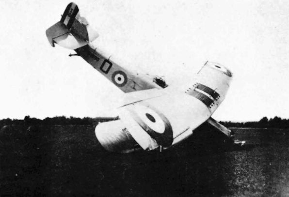 Регистрационный номер: J8608 [3] THE IMPROMPTU SAFETY DEMONSTRATION: The upper photograph shows the Hawker "Horsley" taking off from Cranwell aerodrome. In the centre is depicted the historic moment when Flight-Lieut. Carr landed the machine without Straining a single thing. Note the little puff of dust where the wheels first touched, and also that the landing was a "three-point" one. The lower photograph shows the machine at Martlesham just after landing. It is quite obvious that the machine is intact, even to its Palmer tyres.