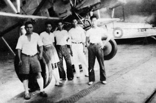 Регистрационный номер: S1614 The photo shows a gang of local helpers in front of a Horsley, also at Seletar. Their serial numbers are not known but in the background is S1614 and is obviously NOT a Nimrod as listed. It is another Horsley which throws doubt on the division between the Horsley and Nimrod batches between S1597 and S1639.