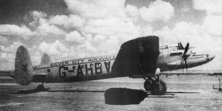 Регистрационный номер: G-AHBV [2] Silver City's Lancastrian 3 G-AHBV in which the author made the company's first charter flight, London-Johannesburg-Sydney-London, leaving London on October 24, 1946. This photograph was taken at Eastleigh, Nairobi in 1948.