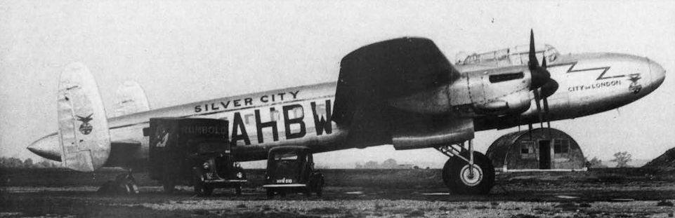 Регистрационный номер: G-AHBT Silver City's Lancastrian 3 G-AHBT, named City of New York. The aircraft was later sold to Skyways and was finally withdrawn from use at Dunsfold in March 1952.