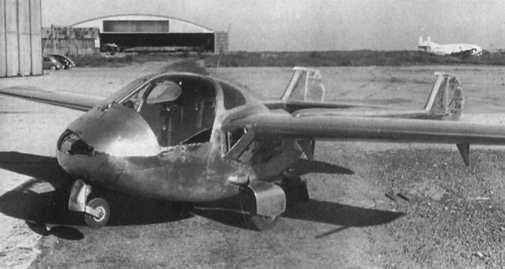 The delightful baby SIPA 200 Minijet F-WCZK at Villacoublay, Paris, on September 14, 1953. In the background is a Breguet 763 Deux-Ponts.
