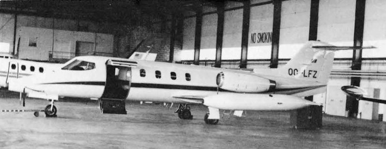 Регистрационный номер: OO-LFZ Also owned by Abelag was this Learjet 25B OO-LFZ (2333) photographed in their hangar at Brussels on 20.9.74.