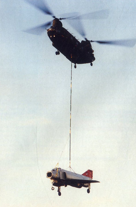 Регистрационный номер: XV420 [3] McDonnell Douglas Phantom FGR.2 XV420, which served with 23 Sqn in the Falklands and has been in storage at Wattisham since 1993, is the new gate-guardian at RAF Neatishead - thanks to a lift from 7 Sqn Boeing Chinook HC.2 ZA720, seen here arriving at Neatishead last November.