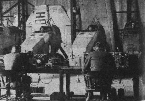 TESTING WIRELESS SETS: Three different sets can be carried on the "Atlas" according to whether its duty is artillery observation, close reconnaissance, or medium reconnaissance.
