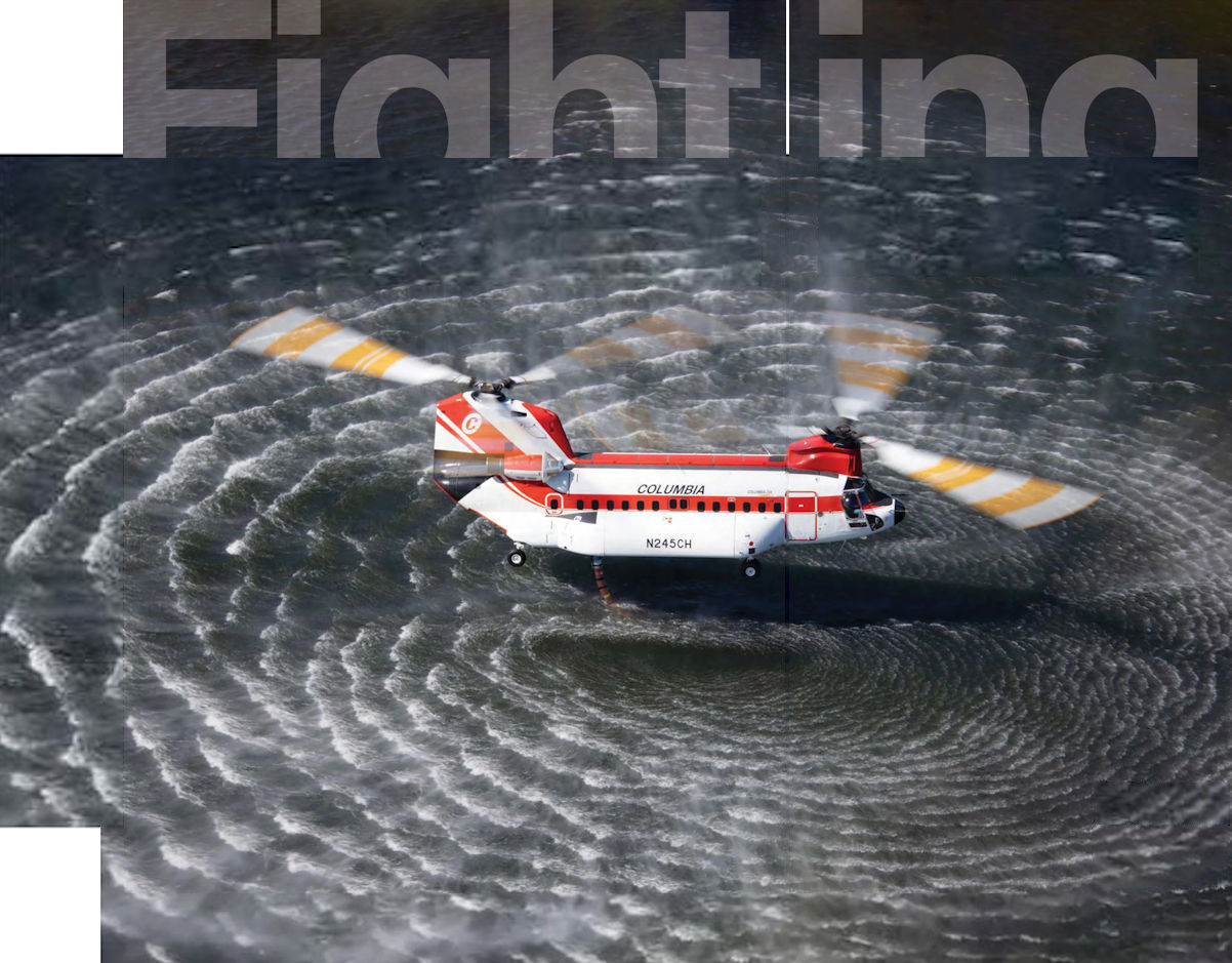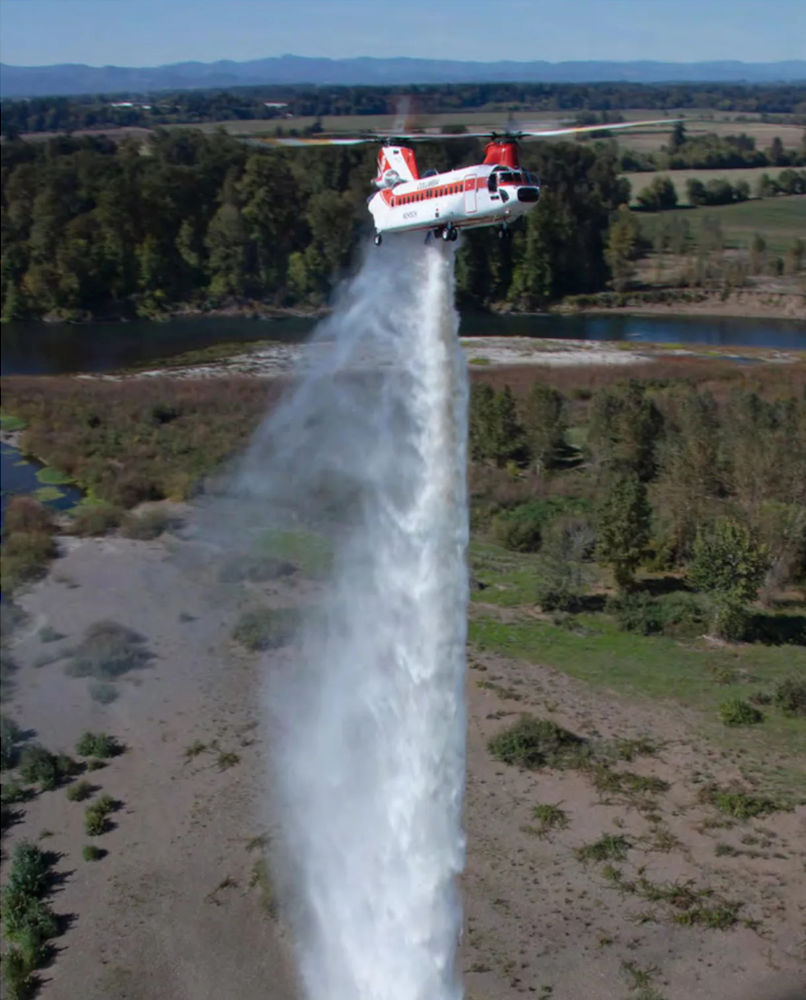 Columbia Helicopters Chinook 234 can take on nearly 11,000 lit of water and drop it in four seconds