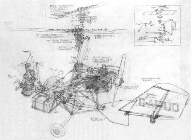 Starting is simplified by the 1 h.p. pre-rotating engine on the rotor head.