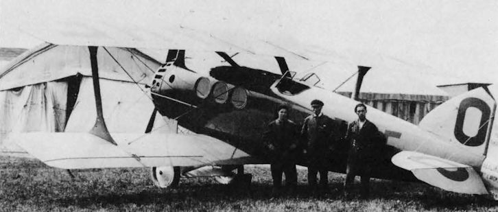 A RECORD-BREAKER: The Spad 56 on which Casale has recently established world's altitude records. The machine is fitted with a Bristol "Jupiter" engine, manufactured in France by the Gnome and Rhone Co.