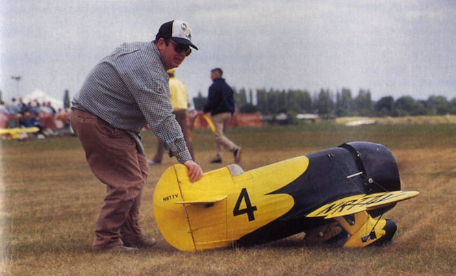 Регистрационный номер: NR2101 [9] 40-year-old Delmar R. Benjamin stands proudly in front of his creation. The replica Gee Bee made its first flight on December 23, 1991 with Benjamin at the controls.