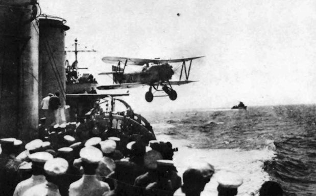 1 апреля 1924г.: в британских ВВС создана авиация флота, отвечающая за все палубные операции и действия гидропланов; воздушное наведение и разведка выполнялись экипажами ВМС, прикомандированными к ВВС, которые осуществляли общее руководство авиацией флота и предоставляли экипажи для выполнения различных летных задач. На снимке Fairey Flycatcher.