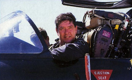 Mike Beachyhead in the cockpit of his Hunter T.8C. A one-hour enthusiasts’ flight costs $3,000. He describes the Hunter as the ideal way to experience classic jet flying.