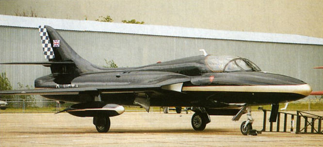 Регистрационный номер: G-APUX [3] Hunter на гражданке. Несколько Hunter эксплуатировались гражданскими компаниями. Наиболее известным стал G-APUX - он принадлежал компании "Hawker Siddeley Aviation" и использовался для испытаний (обратите внимание на большие подкрыльевые топливные баки). В 1960-х годах машину сдавали в долгосрочную аренду Ираку и Иордании, а затем переоборудовали в T.Mk 72 для Чили.