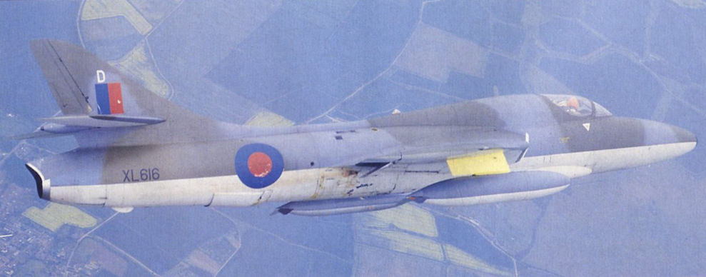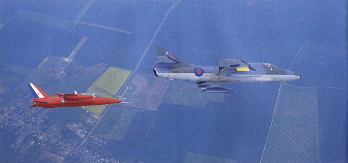 Регистрационный номер: G-BWIE [4], XL616 [4] “So close is the formation that only the tail of the Hunter is visible in the viewfinder”: XL616 and Gnat “XR993” in close proximity to the camera.
