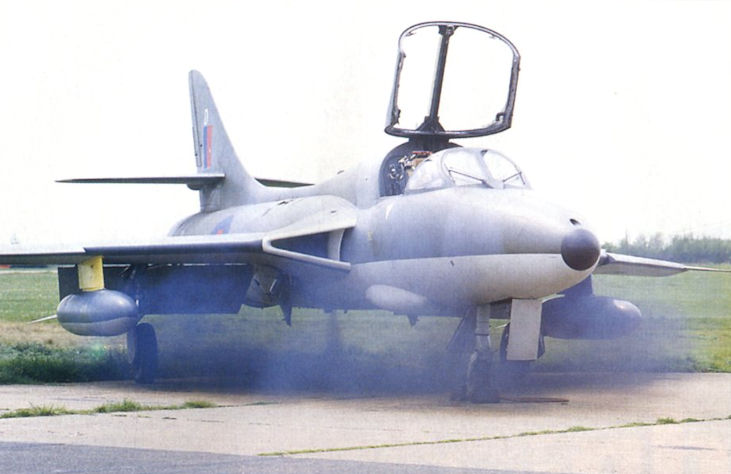 Регистрационный номер: G-BWIE [4], XL616 [4] A smoky start-up for Hunter XL616’s Rolls-Royce Avon engine.