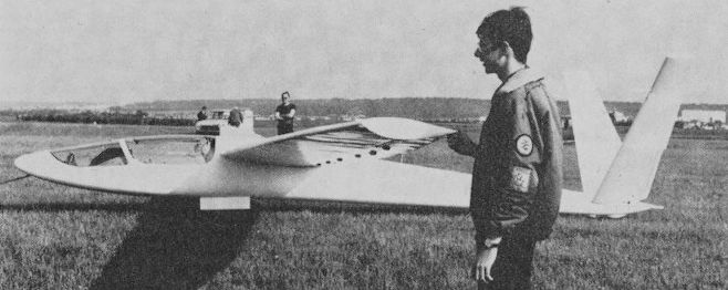 This very elegant high performance Standard Class single-seater was designed by Dr J. Cayla, who had created the Breguet 901 and 905 Fauvette, and like the latter it features a V-tail and makes use of moulded plywood/Klegecel sandwich in its structure. The first of two Edelweiss prototypes made its maiden flight on 25 September 1962, and both prototypes took part in the 1963 World Championships at Junin in Argentina, finishing 2nd, flown by Jacki Lacheny of France, and 17th in the Standard Class contest. The prototype differed from production aircraft in having a slight forward wing sweep, longer span ailerons and air brakes and a longer fuselage nose. The first of an initial production batch of 15 was completed in January 1965, and one of these, piloted by Francois Henry, won the Standard Class section of the 1965 World Championships held at South Cerney, while another Edelweiss was placed 7th; two others of the type also finished 8th and 10th in the Open Class. The Edelweiss is no longer in production, but 50 had been delivered by 1 March 1968. The cantilever single-spar shoulder wings are foam-filled all-wood structures with only eight ribs, of sandwich construction, and are covered by a plywood/Klegecel sandwich skin 8mm thick; the down-turned wing tips are of reinforced plastics and the unslotted ailerons are all-metal. The air brakes in the upper and lower wing surfaces are interconnected with the hydraulic monowheel brake, and up to 110lb of ballast in the form of eight lead bars can be mounted in the wing roots so that the wing-loading can be varied; unlike the more conventional water ballast, this kind cannot be jettisoned. The fuselage is a moulded plywood/Klegecel sandwich structure made in two portions, with integral longerons and nose and tail cones made of laminated plastics. The V-tail consists of two identical all-moving surfaces, with an included angle of 90°, each with a trim tab; the leading edges are of wooden sandwich construction and the remainder is fabric-covered. There is a non-retractable monowheel with a hydraulic brake, and a castoring leaf-spring tailskid. The pilot sits in a semi-reclining seat under a long flush-fitting canopy hinged to starboard, and optional 'extras' that may be installed include a barograph, VHP radio, an oxygen system, artifical horizon, a Jaeger altimeter and a flight calculator.