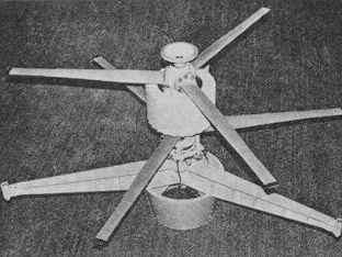 Motorised mockup of a flying platform with three Marchetti Heliscopes