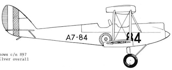 Регистрационный номер: A7-84 Cliff Minney's drawing shows c/n 897 in R.A.A.F. colours of silver overall with black serials.