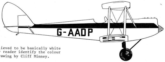 Регистрационный номер: G-AADP G-AADP, believed to be basically white but can any reader identify the colour scheme? Drawing by Cliff Minney.
