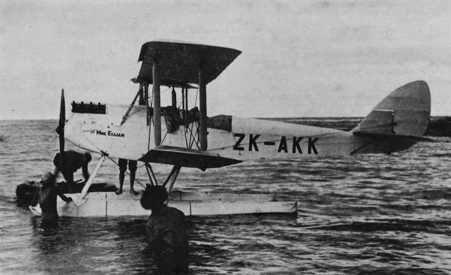 Регистрационный номер: ZK-AKK Francis Chichester's famous Moth "The Mme Elijah" at Emily Bay on Norfolk Island while preparations were being made on 1.4.31 for the start of stage two of his solo trans-Tasman flight. On arrival at Lord Howe Island ZK-AKK was overturned and sank in a storm, requiring a rebuild before the flight could be completed, which it was on June 10th 1931