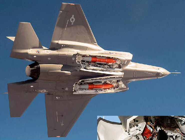 According to Lockheed Martin concept graphics, six Mako multi-mission hypersonic missiles can be carried on the F-35: two internally and four mounted on wing pylons