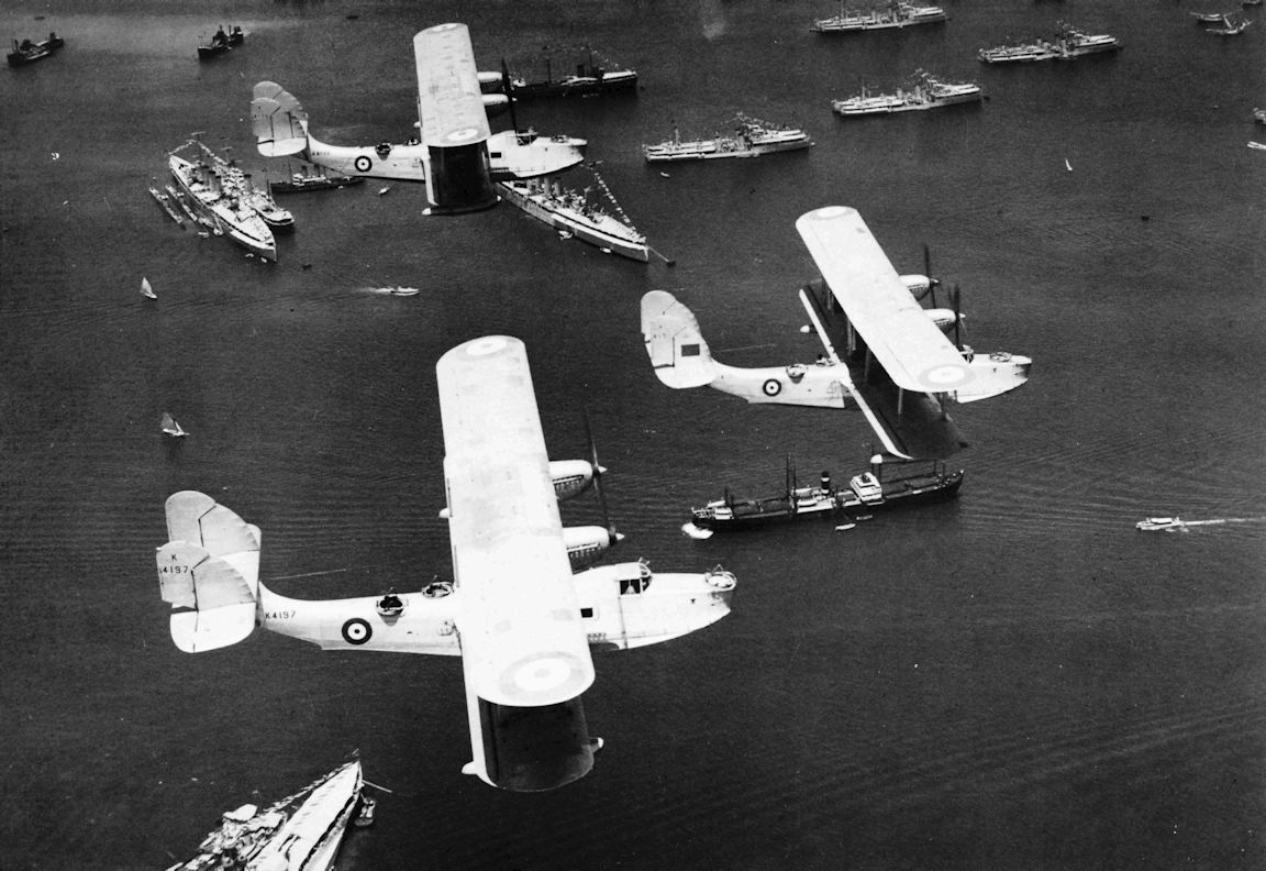 Регистрационный номер: K4197 Kindly loaned by Charles W.Cain, the photograph shows a trio of Supermarine Scapas of No.204 Squadron over the crowded harbour at Alexandria. No.204 was deployed to Egypt during the Italian invasion of Ethiopia when the League of Nations was considering sanctions against Italy. Despite the 'crisis', none of the nine gun positions has a weapon mounted!