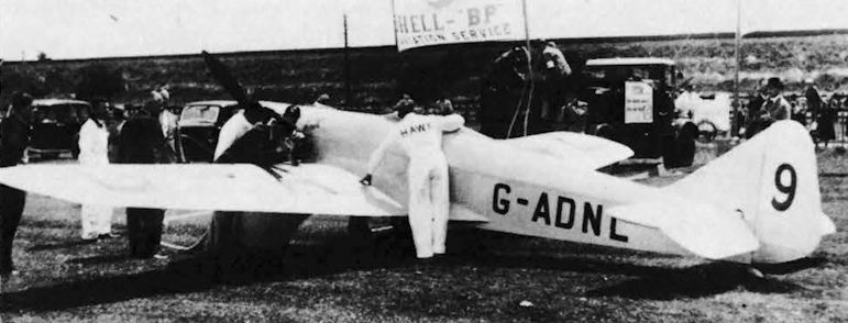 Регистрационный номер: G-ADNL [18] Homage to E. F. Walter's Hawk and F/O A. E. Clouston's Sparrow Hawk (scratch) at the start of the Contact race.
